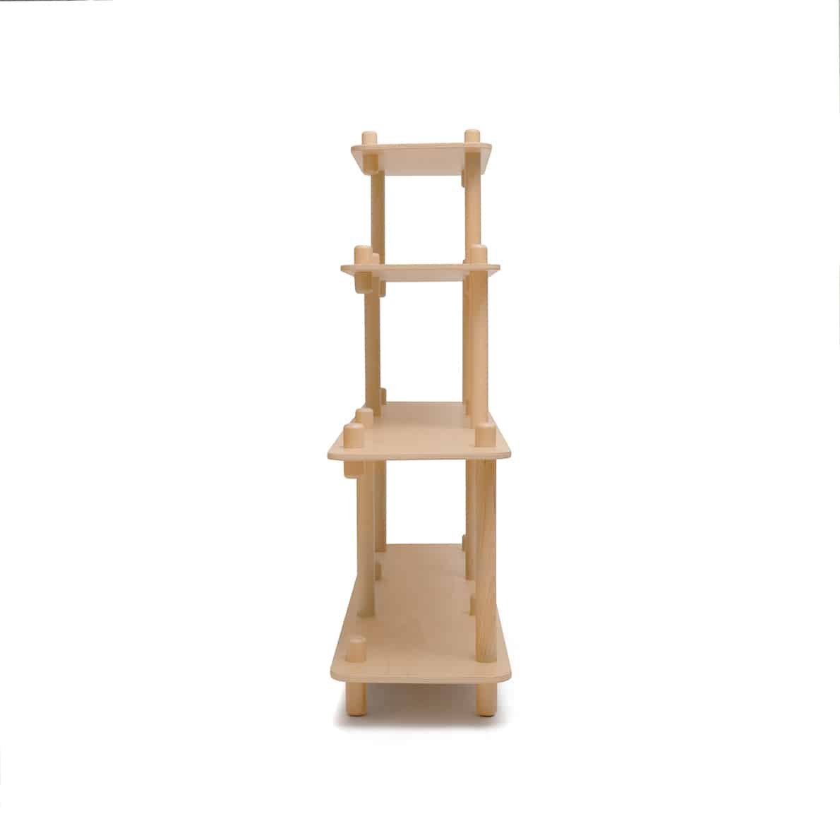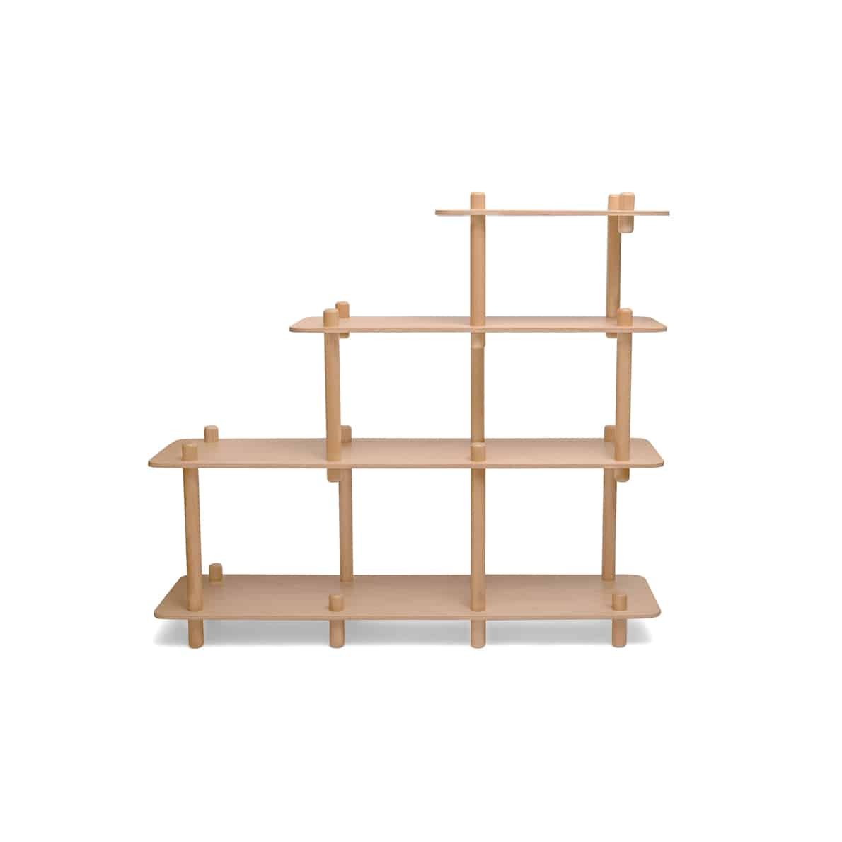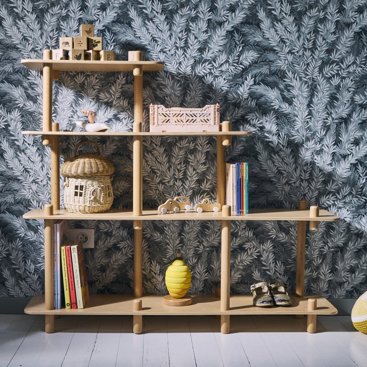 Mit vier unterschiedlich großen Ablageflächen bietet das Regal viel Platz für Bücher, Spielzeug und Deko-Elemente – perfekt, um Ordnung zu halten und Lieblingsstücke stilvoll in Szene zu setzen. Dank seines durchdachten Designs fügt sich das Regal harmonisch in verschiedene Einrichtungsstile ein und wird zum praktischen Hingucker im Kinderzimmer.
