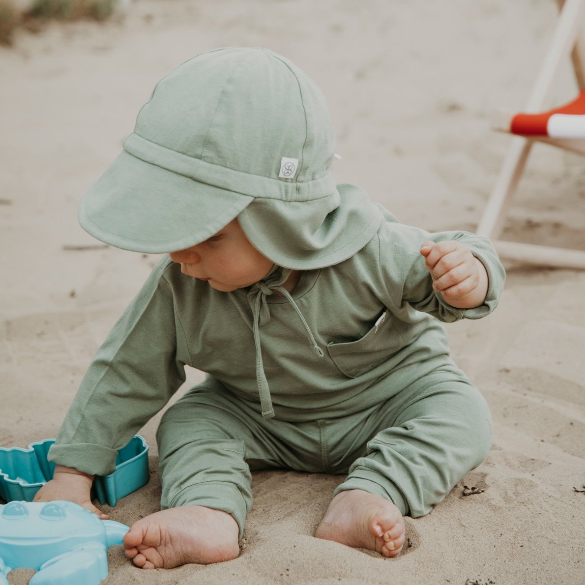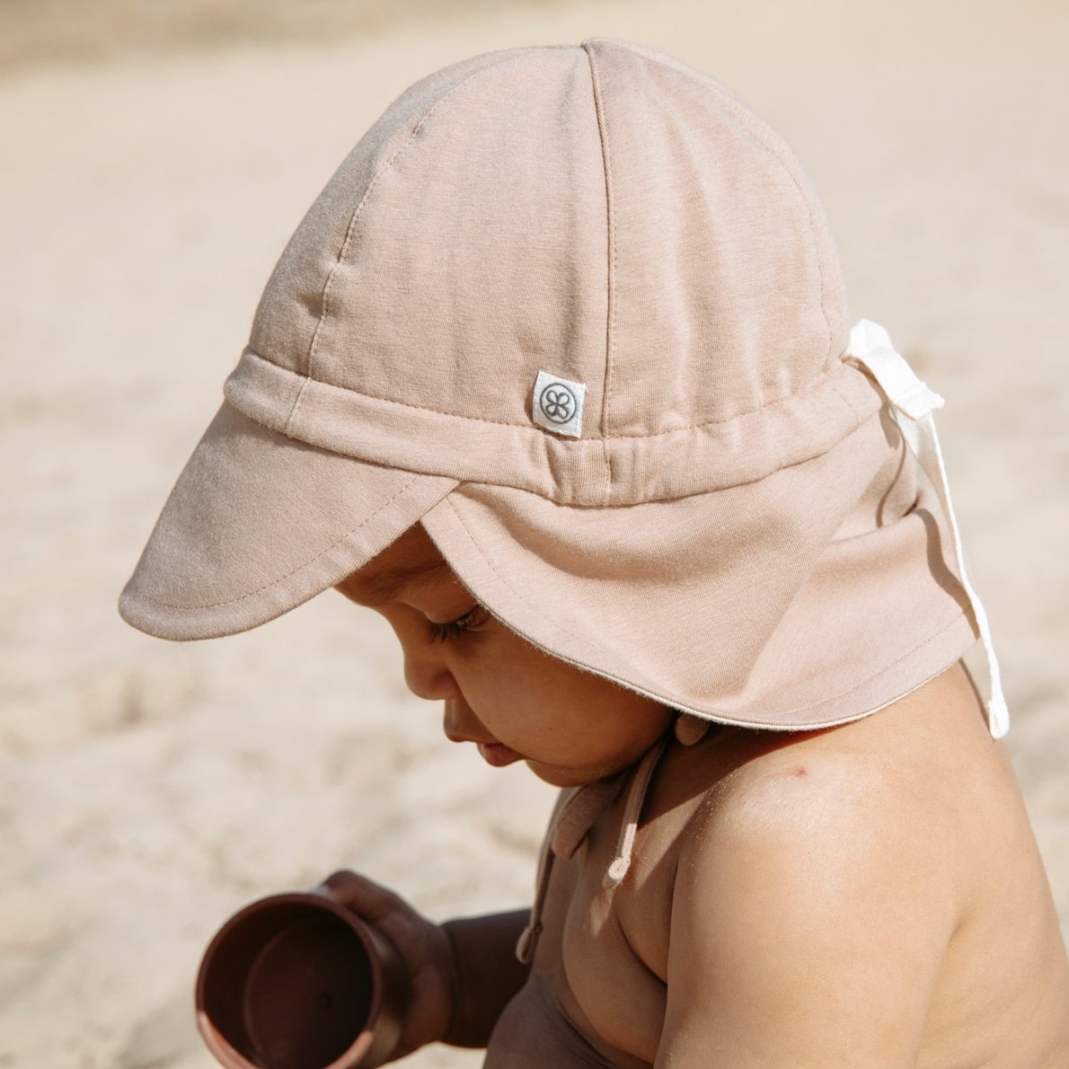 Die Cloby Sonnenhüte sind super niedlich und fühlen sich auf dem Kopf Eurer Kleinen ganz weich an. Mit einem geprüften Sonnenschutz von UPF 50+ schützen sie die Augen, die Ohren und den Nacken, während man draußen unterwegs ist. Die Hüte sind wendbar – jede Farbe hat eine Sandy Beach farbige Innenseite – und können auf beiden Seiten getragen werden. Perfekter Sitz ist durch die Baumwollkordel zum Anpassen garantiert.