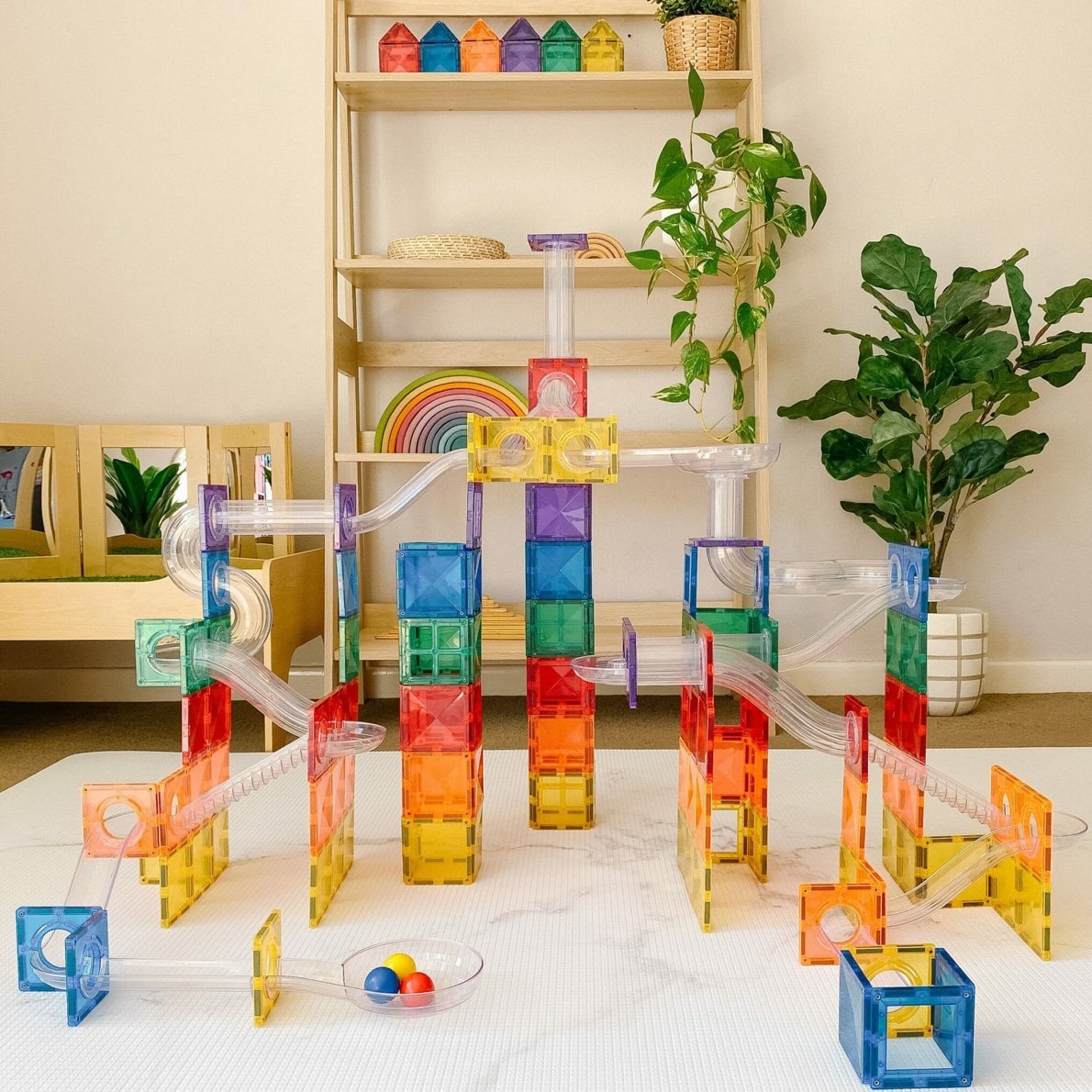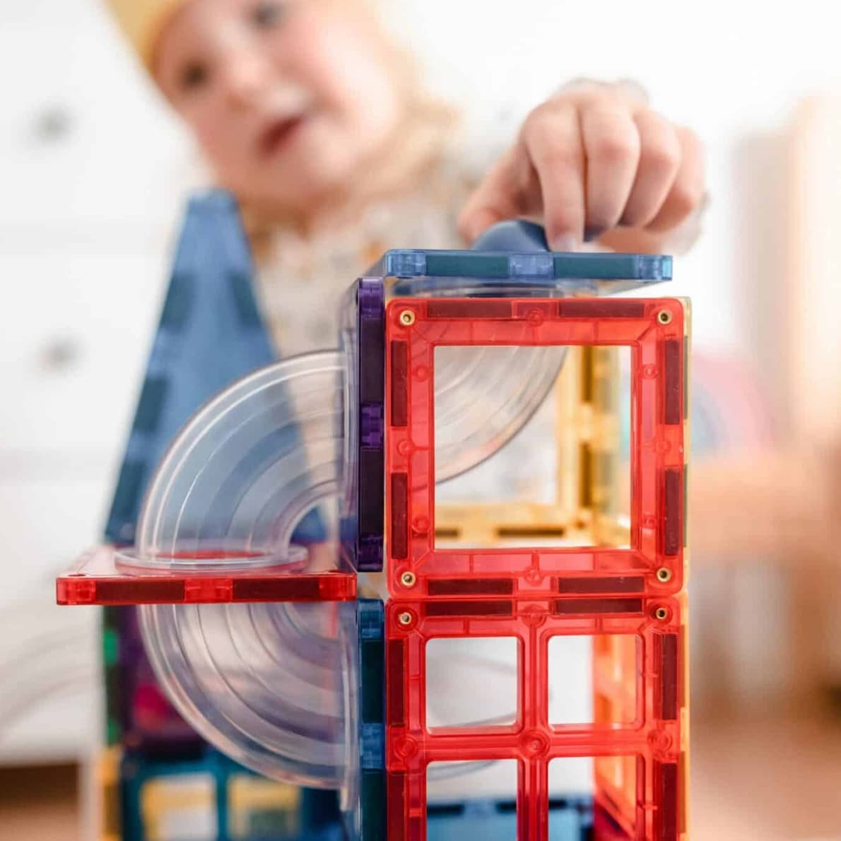 Das einzigartige, abgeschrägte Design sorgt dafür, dass Connetix stabil ist und gleichzeitig schöne, klare Lichtbrechungen bietet. Connetix sind mit anderen führenden Marken kompatibel.