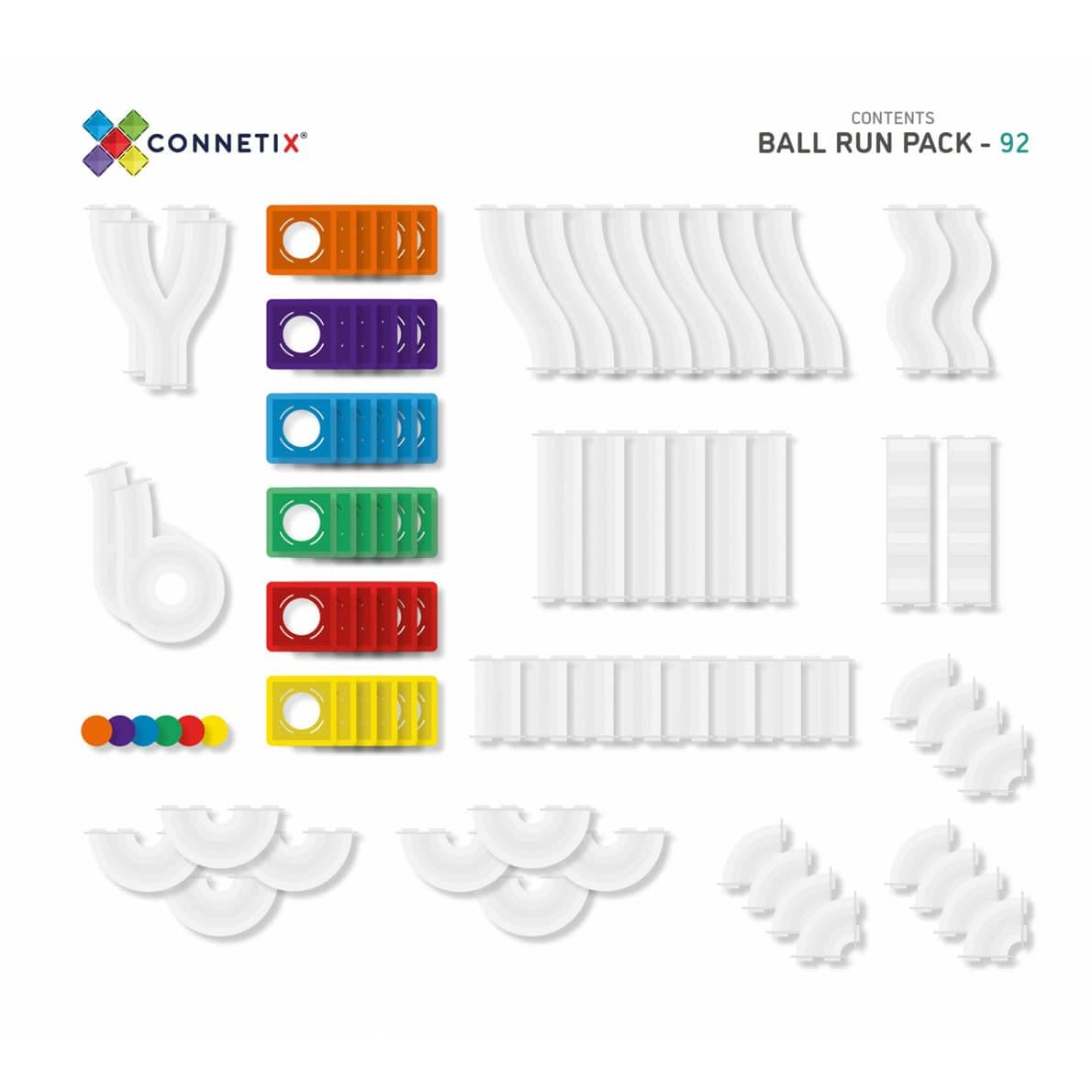 Das Ball Run Pack wurde aus ungiftigen Materialien hergestellt und ist die perfekte Ergänzung zu unseren Standard Connetix Packs.