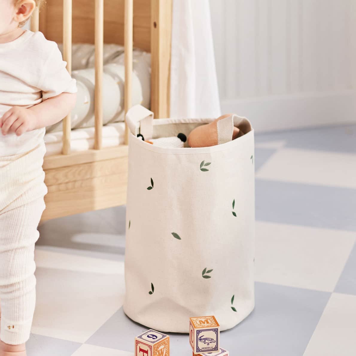 Mit dem hübschen gesteppten Aufbewahrungskorb von Dear April kann Euer Kind ganz einfach seine Sachen ordnen und zum Beispiel seine geliebten Kuscheltiere. Der Korb ist beidseitig verwendbar, mit einer bestickten Seite und einer einfarbigen, staubbraunen Seite. Somit ist das Kinderzimmer immer ordentlich und sieht mit dem süßen Aufbewahrungskorb nebenbei noch super stylisch aus.