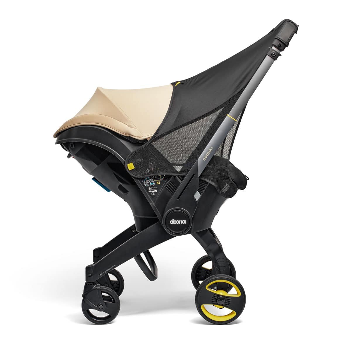 Auch an einem herrlich warmen Sommertag möchte jeder sein Baby bestens vor den Gefahren von zu viel Sonneneinstrahlung geschützt wissen. Die ideale Lösung bietet hierzu der Doona Sonnenschutz. Durch das einzigartige „snap-on“-Befestigungssystem ist die Montage schnell und einfach und der erweiterte Schattenbereich gewährleistet den gewünschten Schutz vor Sonneneinstrahlung. Durch die anpassbare zusätzliche Schutzschicht wird der UV-Schutz (UVF>50) noch einmal deutlich verbessert. Eine kompakte Tragetasche ist im Set enthalten und das Material ist bei Bedarf einfach waschbar.