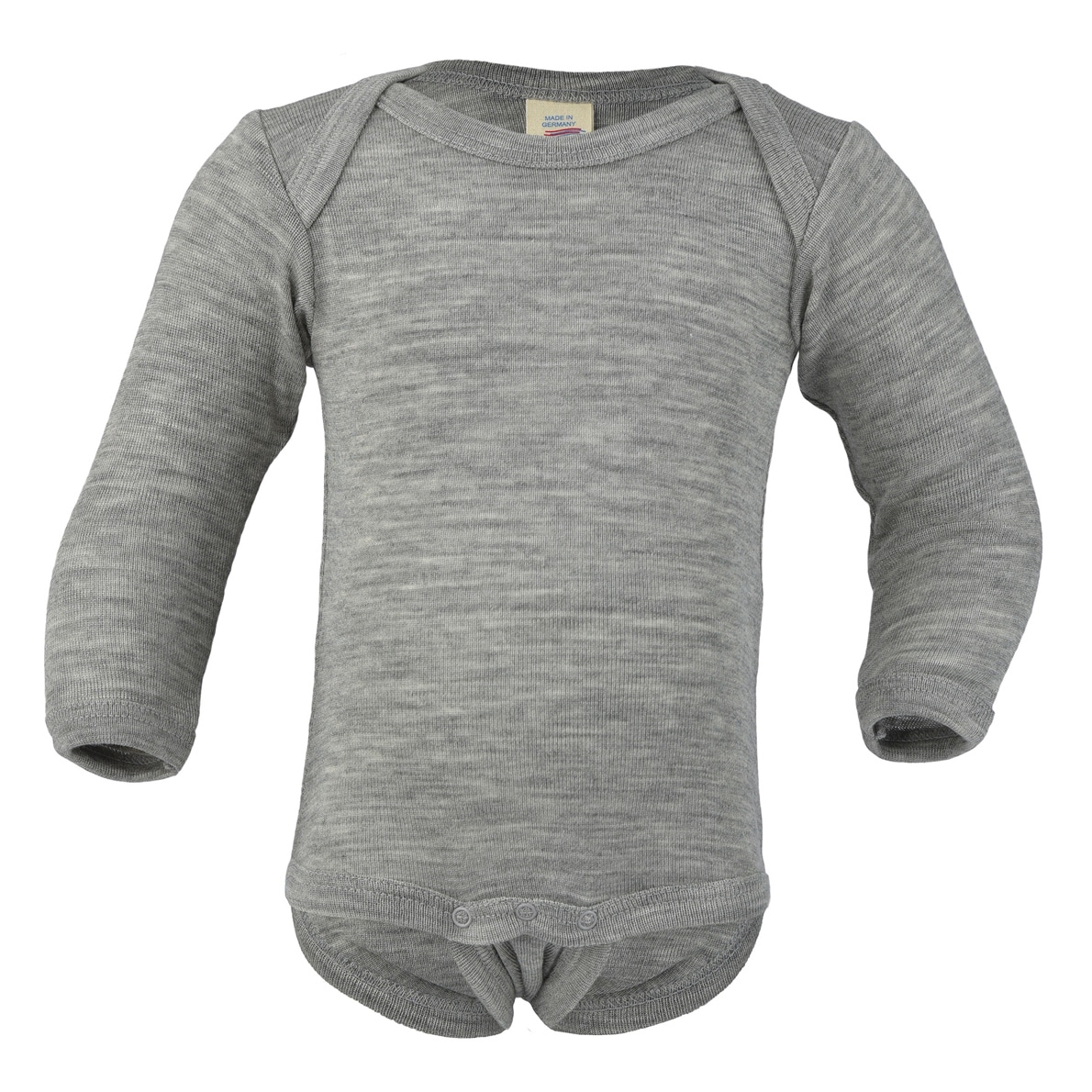 Kuscheliger und wärmender Feinripp-Body aus 70% Schurwolle 30% Seide von Engel Naturtextilien. Die hochwertige Materialmischung liegt nicht nur ganz weich auf der zarten Babyhaut auf, sie ist auch wärme- und feuchtigkeitsregulierend und sorgt so für ein gesundes Hautklima. Am Schritt hat der Babybody Druckknöpfe, die ein leichtes Windelwechseln sowie An- und Auskleiden ermöglichen. Der amerikanische Ausschnitt lässt sich bequem über das Babyköpfchen ziehen. Die Firma Engel fertigt ausschließlich in Deutschland nach höchsten ökologischen und sozialen Kriterien.