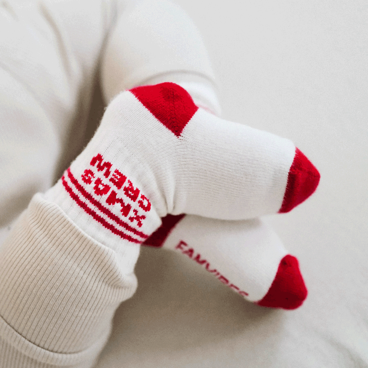 Diese entzückenden „X-Mas Crew“ Babysocken von Famvibes bieten eine festliche Note mit ihrem auffälligen Design in Rot und Weiß. Die Socken bestehen aus weichem, hautfreundlichem Material, das für optimalen Tragekomfort sorgt. Die roten Akzente an Ferse, Zehen und das markante „X-Mas Crew“-Branding verleihen ihnen einen weihnachtlichen Touch. Ideal für Babys und Kleinkinder, halten sie kleine Füße warm und gemütlich in der kalten Jahreszeit. Perfekt für die Festtage oder als Geschenk zur Weihnachtszeit!