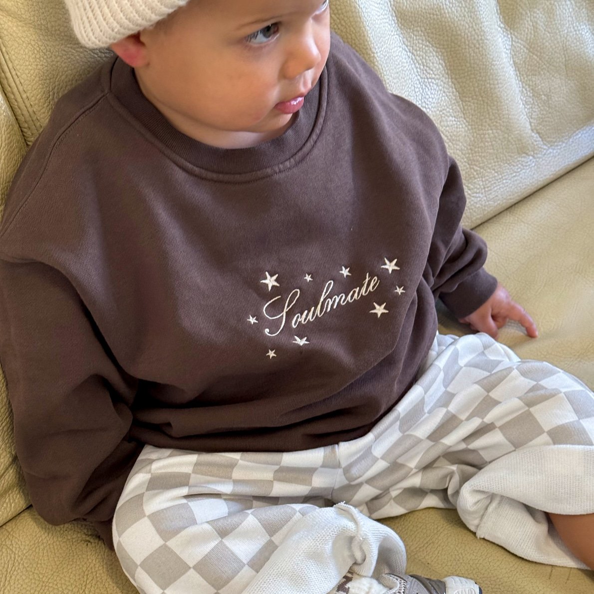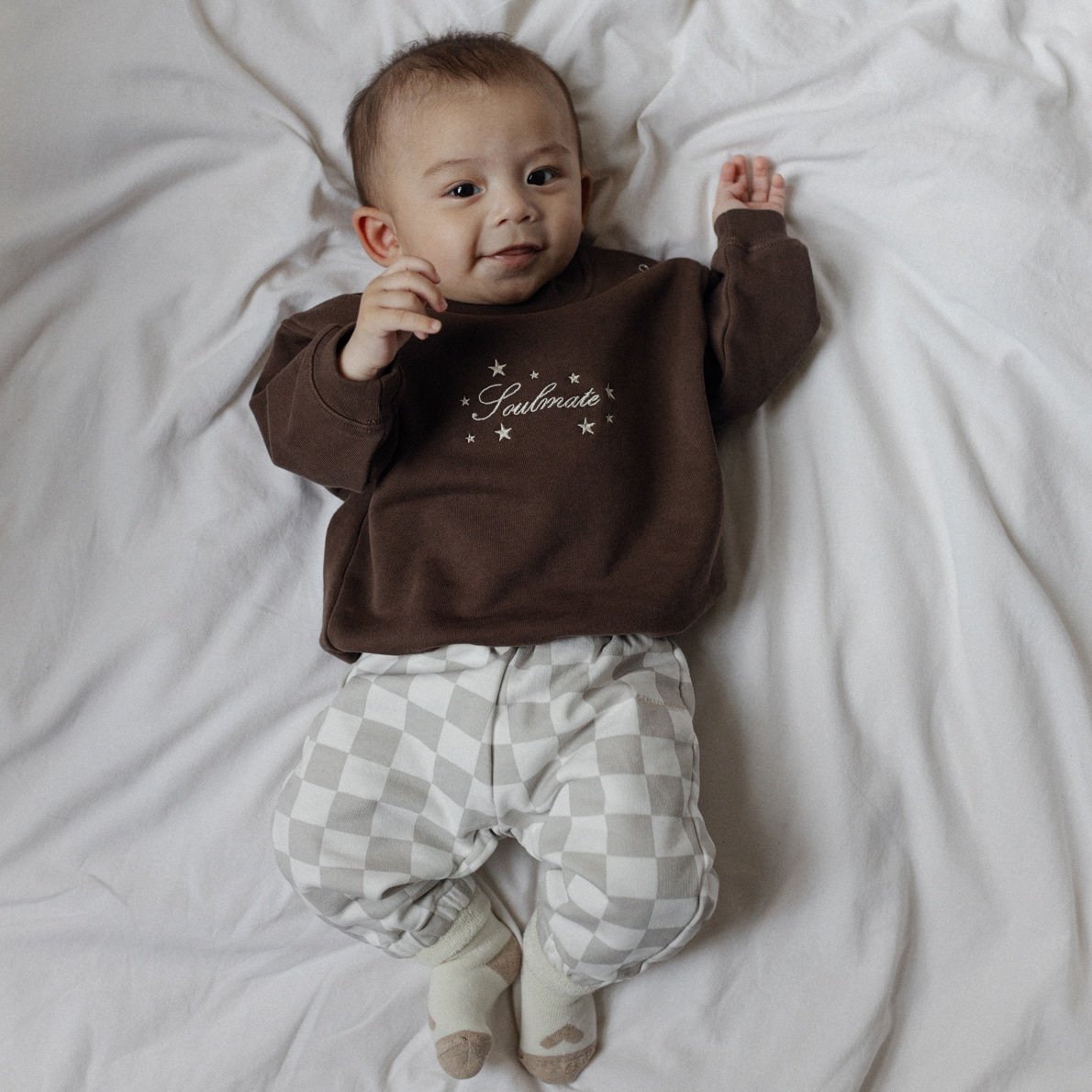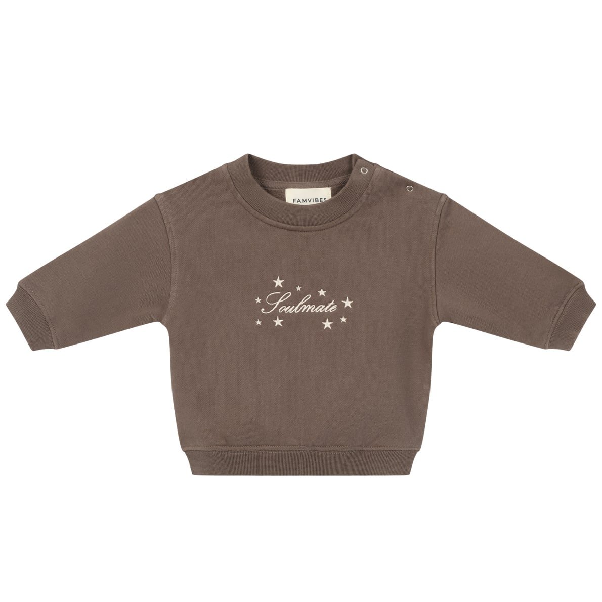 Ein kleines Statement mit großer Bedeutung: Das Soulmate Baby-Sweatshirt von Famvibes in warmem Braun ist aus 100% weicher Baumwolle gefertigt und besonders angenehm auf der zarten Babyhaut. Der verspielte Sternen-Print mit dem Schriftzug Soulmate macht es zu einem liebevollen Hingucker. Praktische Druckknöpfe an der Schulter erleichtern das An- und Ausziehen im Alltag.