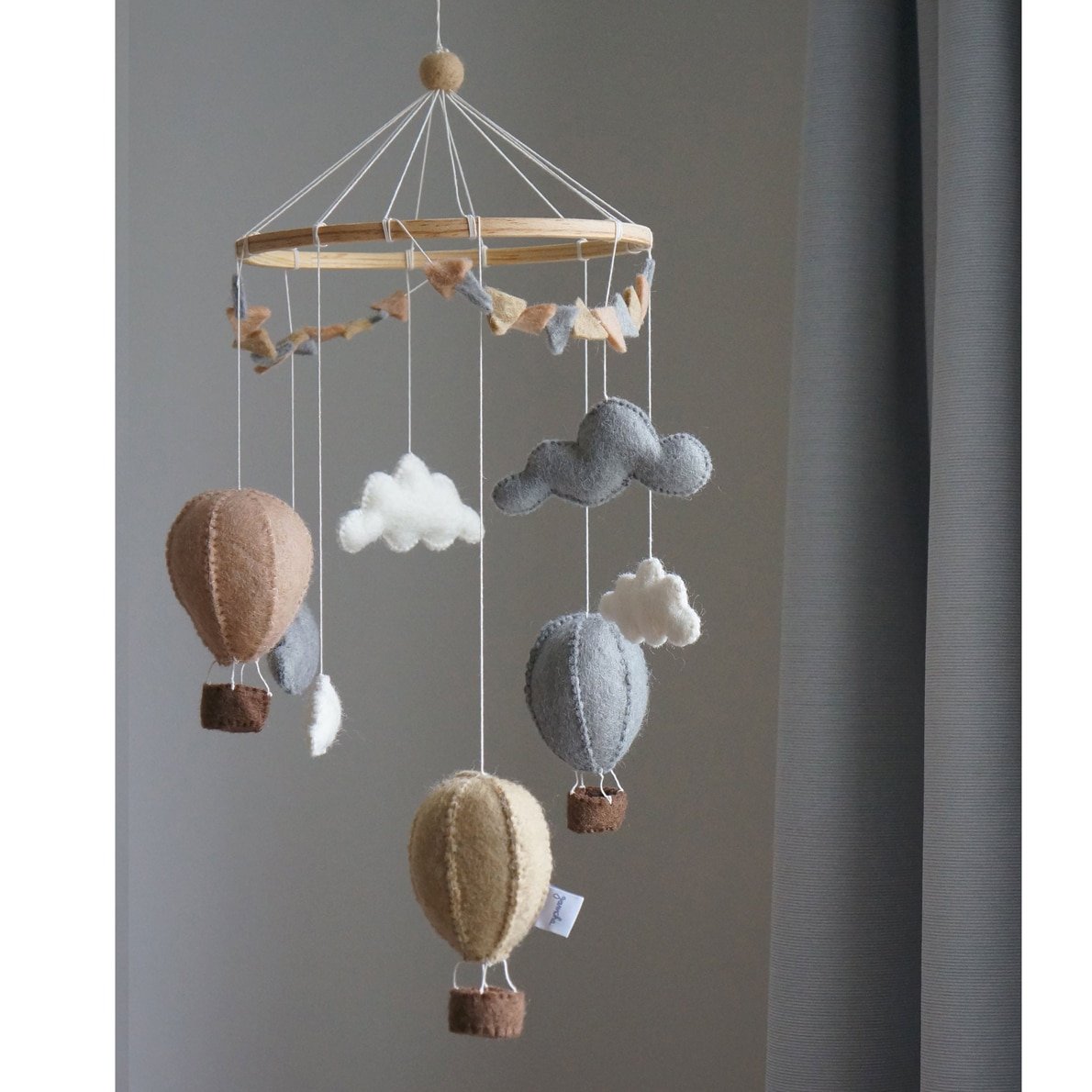 Schönes und detailliertes Mobile mit Luftballons und Wolken. Das Mobile ist wunderschön mit einer niedlichen Schleife verpackt, also ein perfektes Geschenk zur Geburt oder Babyshower Party. Es ist handgefertigt – jedes Produkt ist daher einzigartig und kleine Abweichungen in der Form sollten erwartet werden.