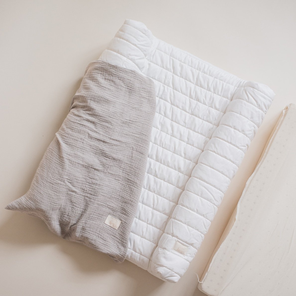 Der Bezug aus feinem Bio-Baumwollmusselin ist der ideale Schutz für die Wickelauflage von hogi. Durch den angepassten Schnitt auf der Rückseite und das eingefasste Spanngummi ist dieser leicht zu wechseln und waschbar.