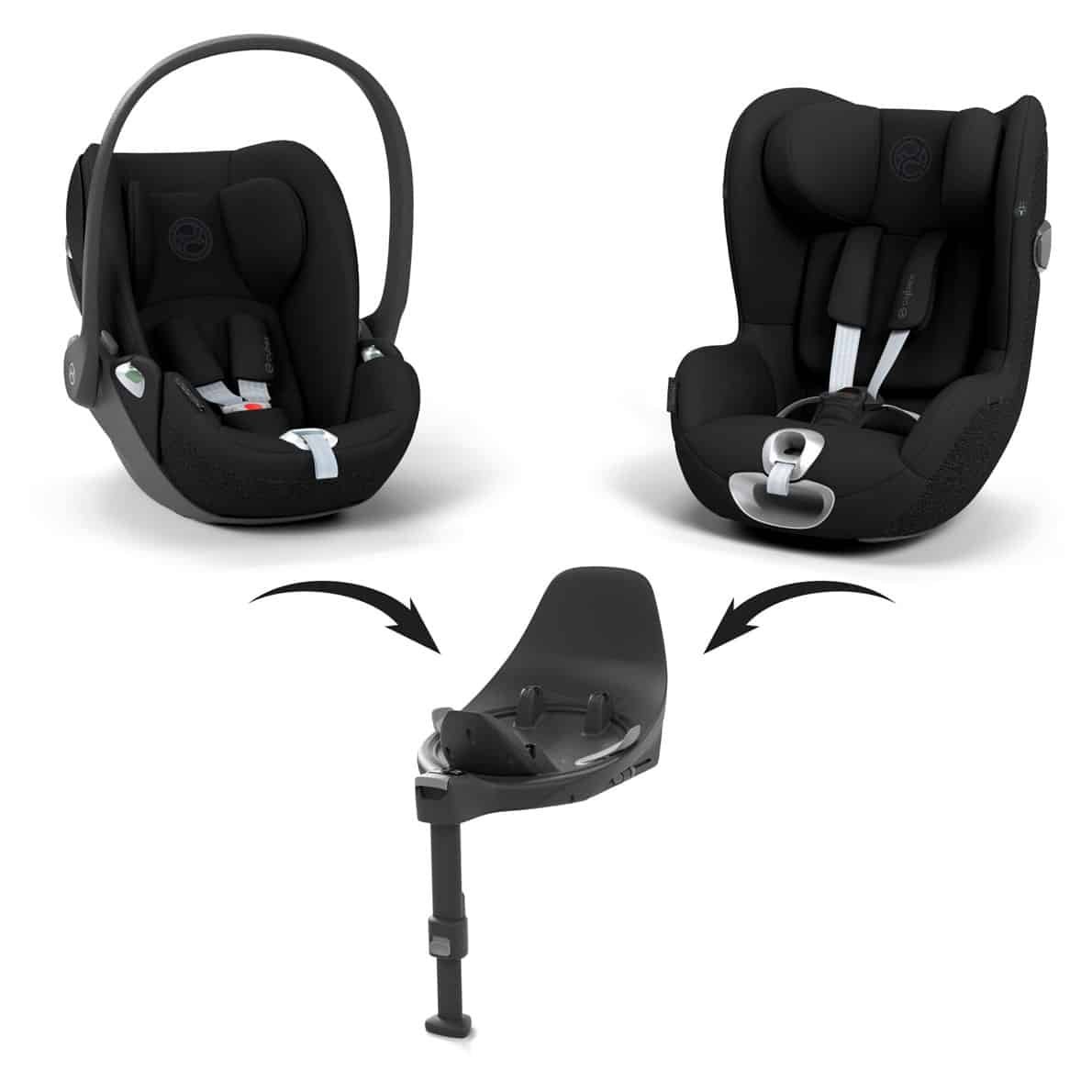 - Nachhaltiges Investment: 1 Basis und 2 aufeinanderfolgende Kindersitze aus dem Modularsystem T Line von CYBEX.