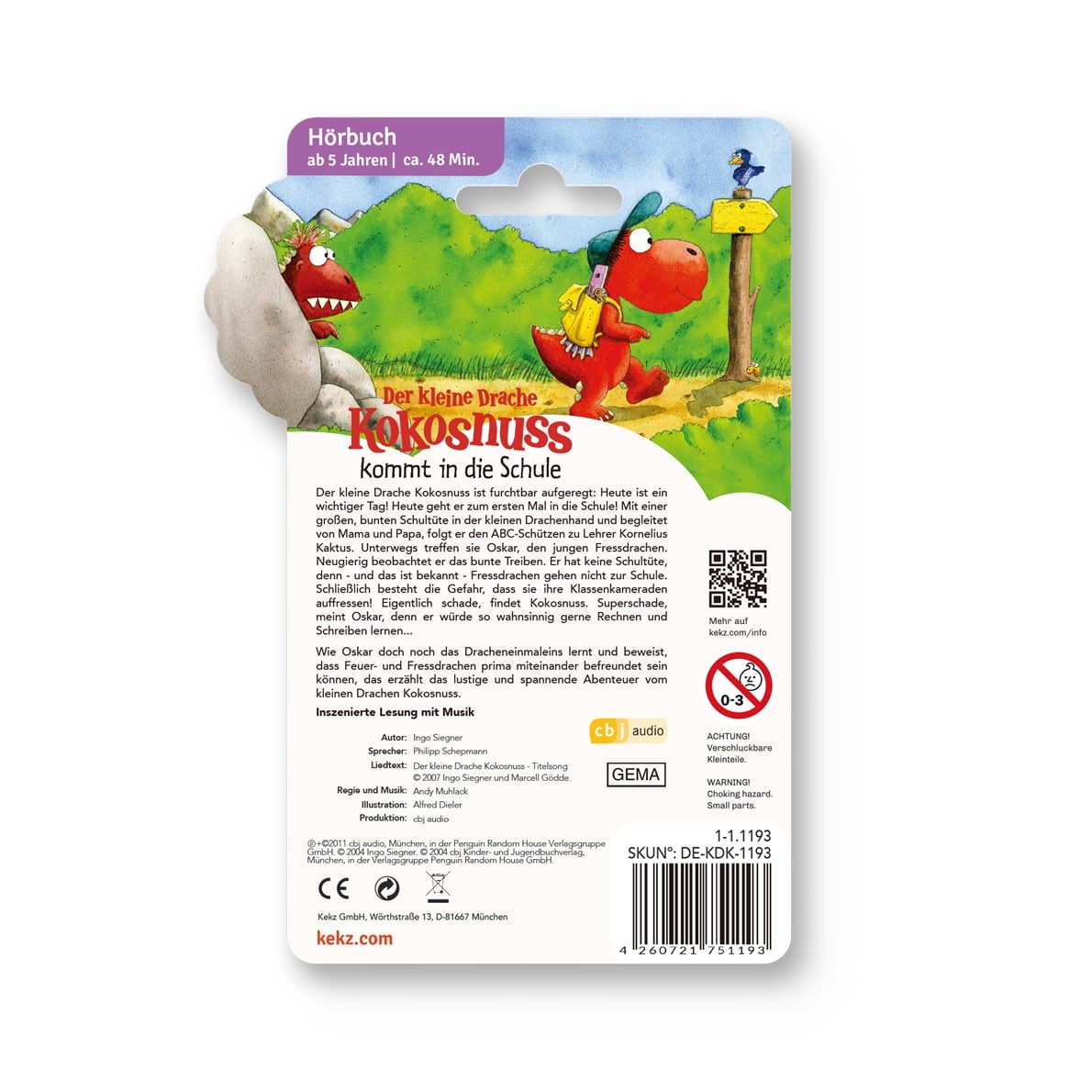 Der kleine Drache Kokosnuss ist furchtbar aufgeregt: Heute ist ein wichtiger Tag! Heute geht er zum ersten Mal in die Schule! Mit einer großen, bunten Schultüte in der kleinen Drachenhand und begleitet von Mama und Papa, folgt er den ABC-Schützen zu Lehrer Kornelius Kaktus.