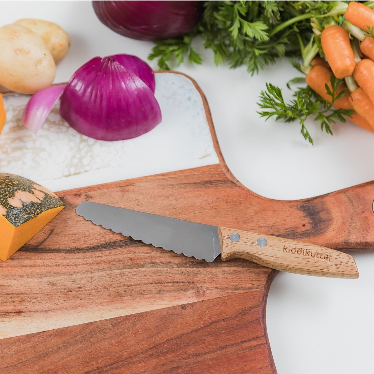 Mit diesem wunderbaren Küchenmesser können Eure Kinder zu kleinen Küchenhelfern werden und das Schneiden üben, ohne sich dabei zu verletzten. Das Messer funktioniert nach dem Prinzip der Säge Wirkung und schneidet alles, was ein scharfes Messer kann. Aufgrund der abgerundeten Zähne der Edelstahlklinge schneidet es den Kindern jedoch nicht in die Finger. Das Messer ist aus stumpfem, nicht rostendem Edelstahl. Das eigenständige Schneiden von Lebensmitteln sorgt für großen Spaß und fördert die Liebe zum Kochen und gesundem Essen.