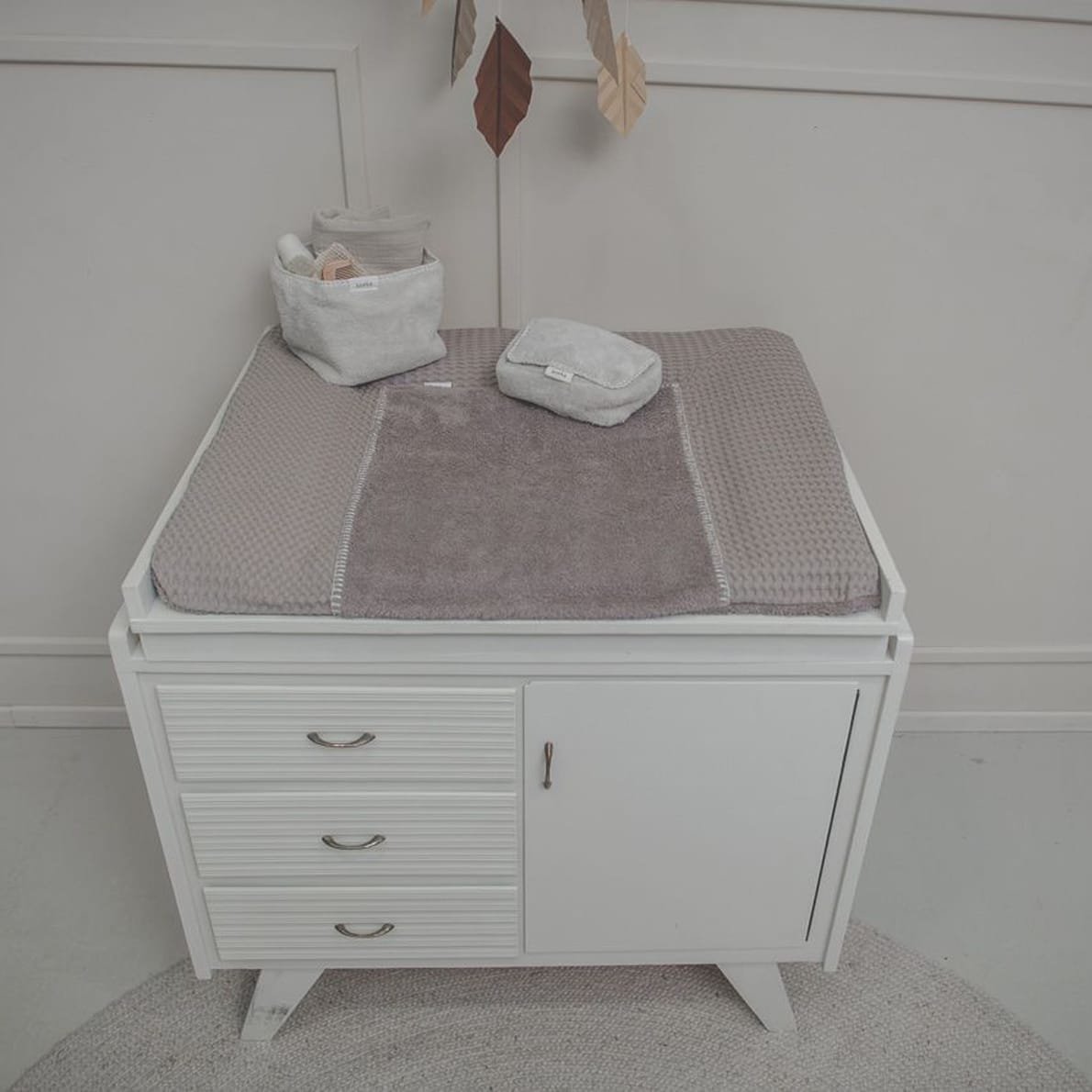 Überprüft die Maße Eurer Wickelauflage, um eine schöne, passende Wickelauflage zu finden. Dieser Bezug misst 90 x 78 cm. Die Befestigung des Bezugs ist ähnlich wie bei einem Spannbetttuch. Ihr könnt ihn einfach um die Wickelauflage ziehen, und der Bezug zieht sich durch das Gummiband an der Unterseite selbst fest. Wir empfehlen Euch als Inlet unsere Julius Zöllner Wickelauflage Softy.