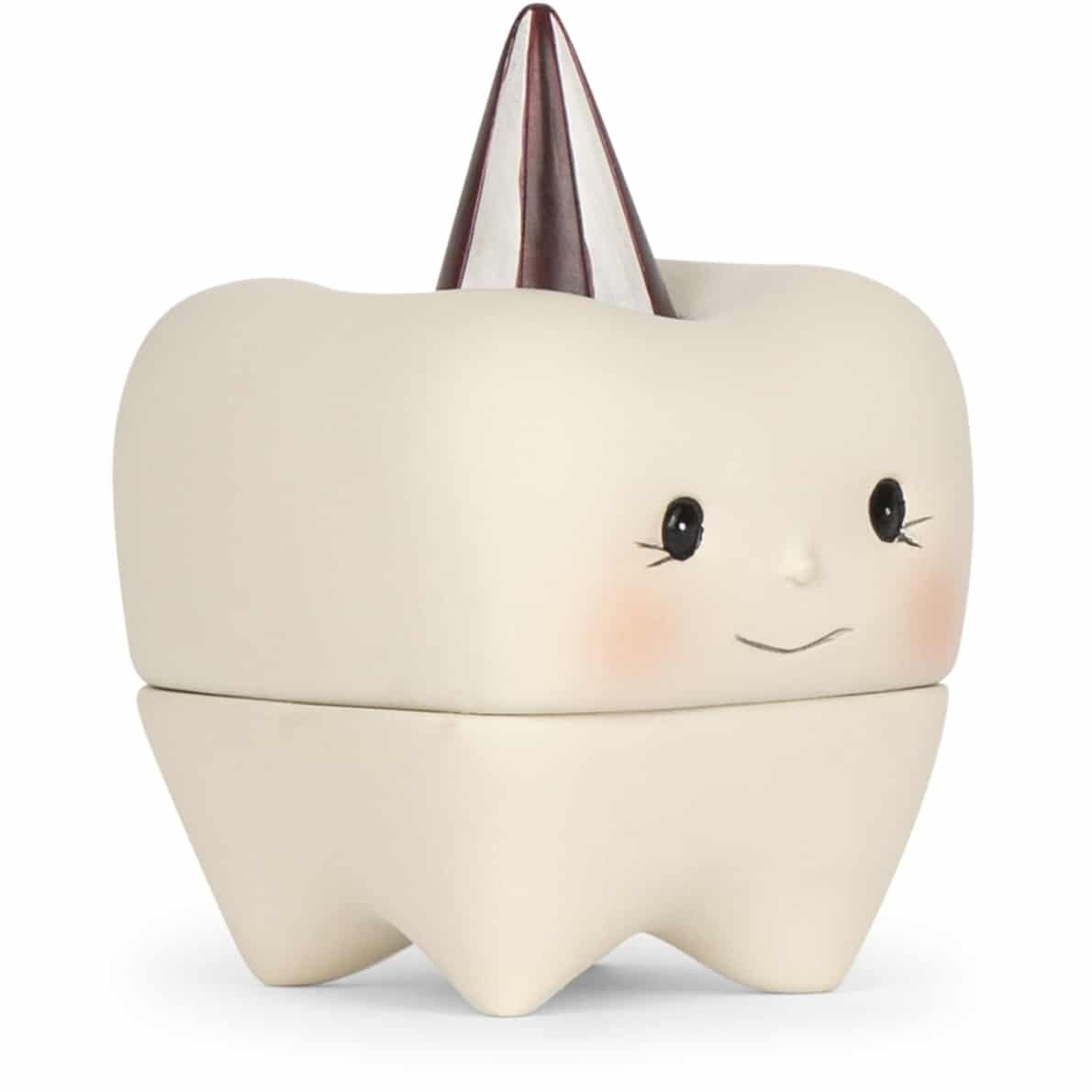 Das ist Tooth, der kleine Helfer der Zahnfee. Die kleine Box ist eine schöne Möglichkeit zur Aufbewahrung der Milchzähne Euer Kleinen.