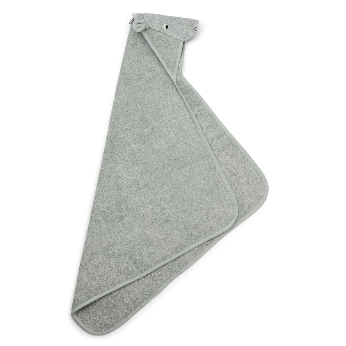 Kapuzenhandtuch für kleine Hippo-Fans! Es besteht aus weichem Bio-Baumwollfrottee und eignet sich perfekt zum Kuscheln nach dem Bad.