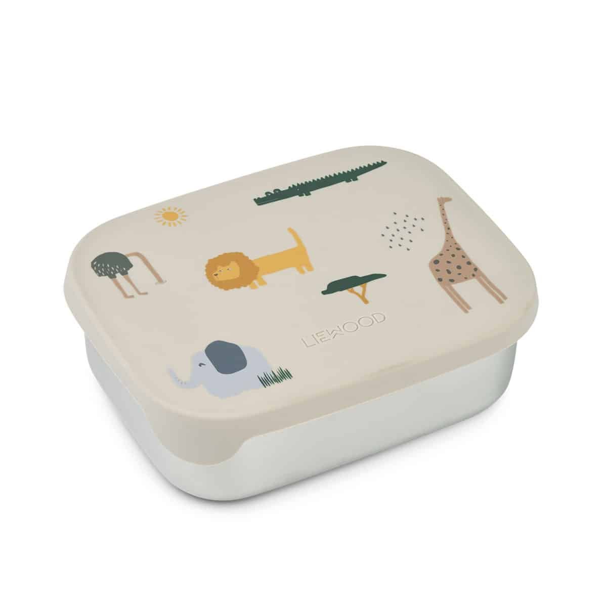 Die schöne Lunchbox Arthur von Liewood ist perfekt für das Pausenbrot und andere Leckereien. Sie ist aus Edelstahl und hat den Vorteil gegenüber Kunststoffprodukten, dass Edelstahl den Geschmack und Geruch von Lebensmitteln nicht stark annimmt. Dank des Silikondeckels bleibt der Inhalt besonders lange frisch. Auf dem Deckel befinden sich die Liewood-typischen niedlichen Tiermotive. Aufgrund der praktischen Unterteilung in 3 Fächer können die Snacks gut getrennt werden.