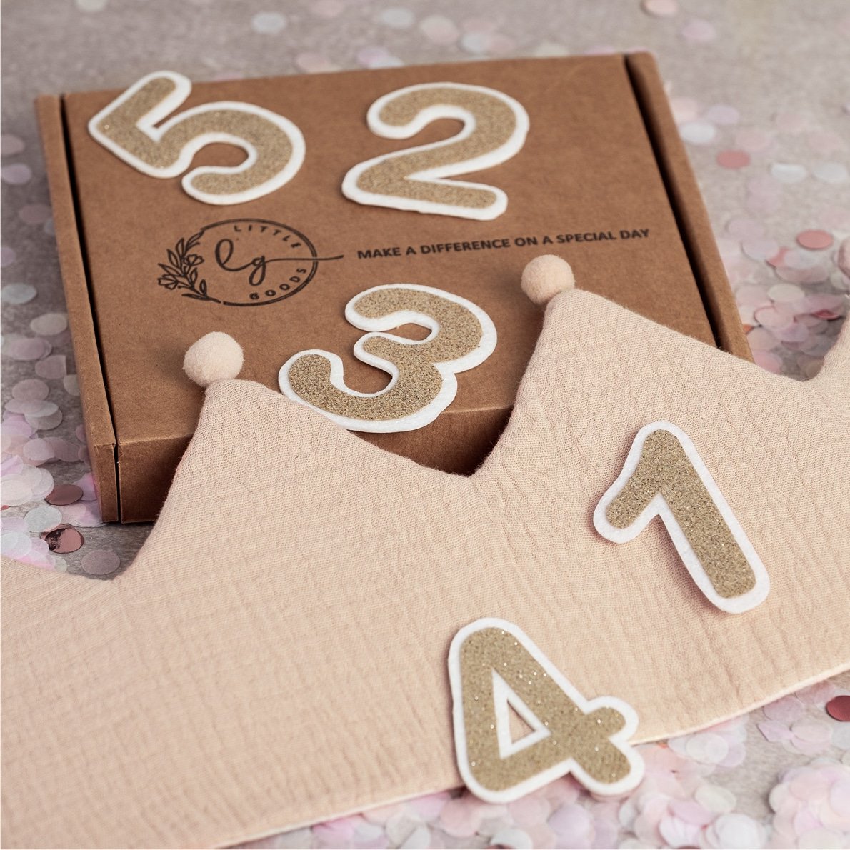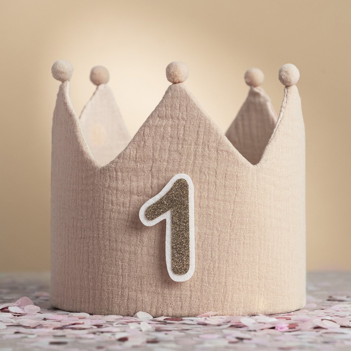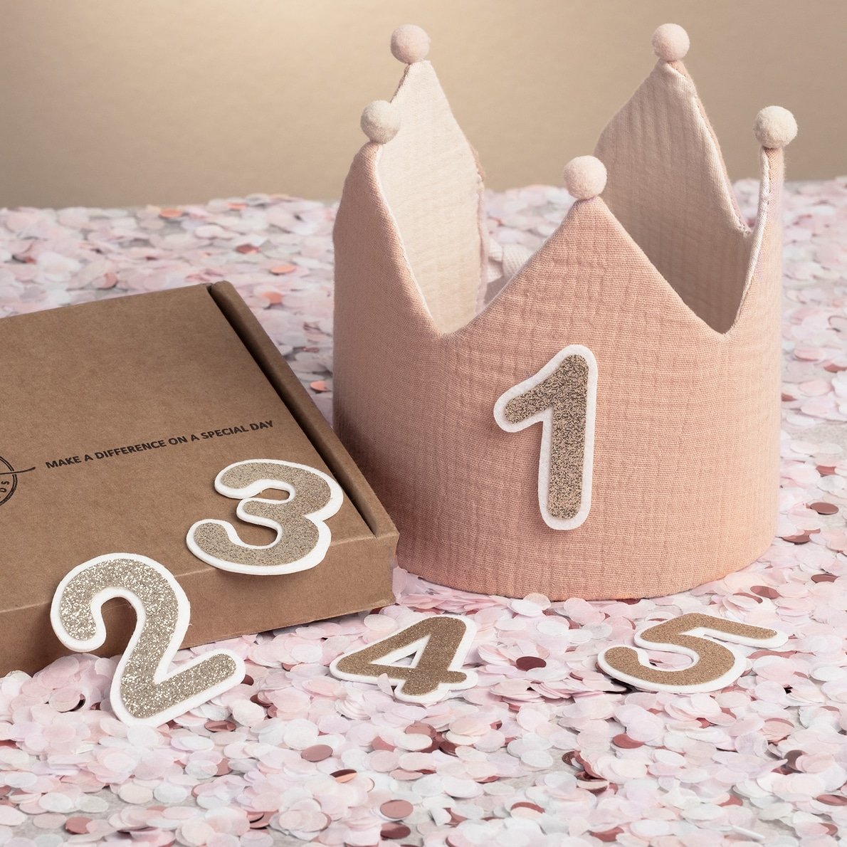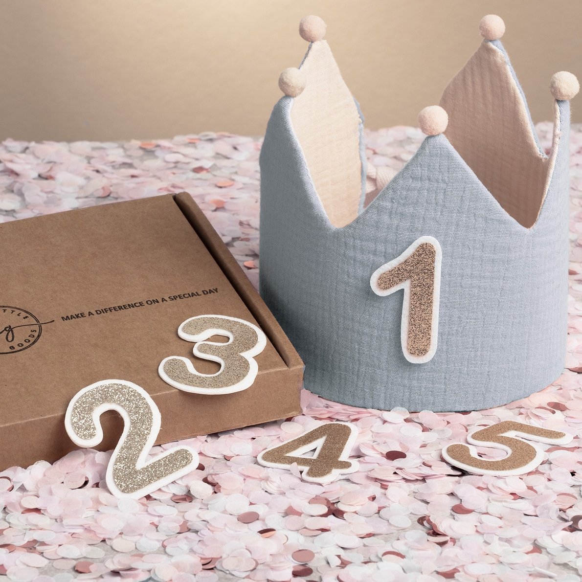Geburtstage sind gerade für unsere Kleinsten das Highlight des Jahres und hier darf die Geburtstagskrone nicht fehlen – frei nach dem Motto von Little Goods „Make a difference on a special day“. Die schönen, wendbaren Kronen mit niedlichen Bommeln bestehen aus Baumwoll-Musselin und jedes Jahr kann der Zahlenbutton ausgetauscht werden, da dieser mit einem doppelseitigen Klebepunkt versehen ist und sich leicht lösen lässt.