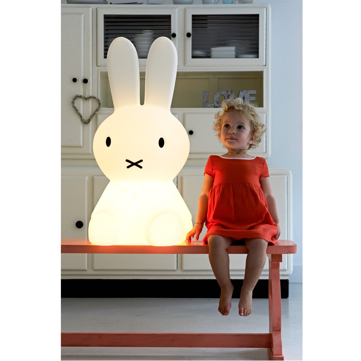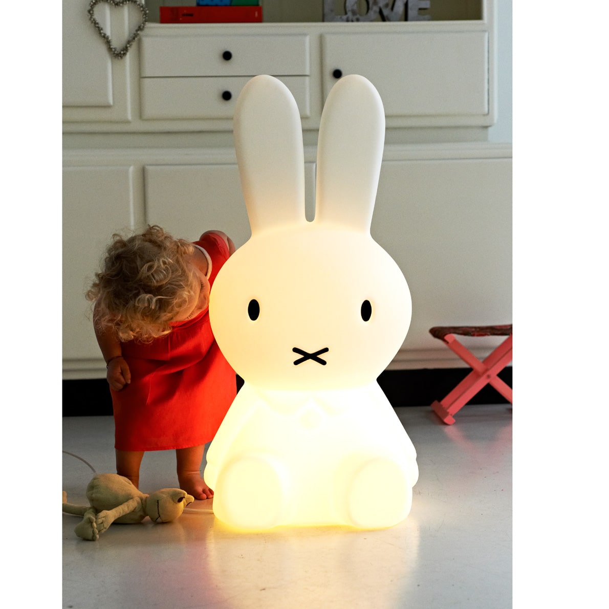 Kennt Ihr Miffy schon? Miffy wurde von dem niederländischen Künstler Dick Bruna erfunden und ist ein bezaubernder Kinderbuch-Charakter, der Groß und Klein verzaubert! Wie schön, dass Ihr Miffy nun auch in Lampenform ins Kinderzimmer einladen könnt! Diese LED- Lampe gibt ein sehr angenehmes, weiches und warmes Licht, super geeignet für die Kuschelecke – aber auch im modernen Wohnzimmer macht das süße Häschen eine gute Figur;-)!
