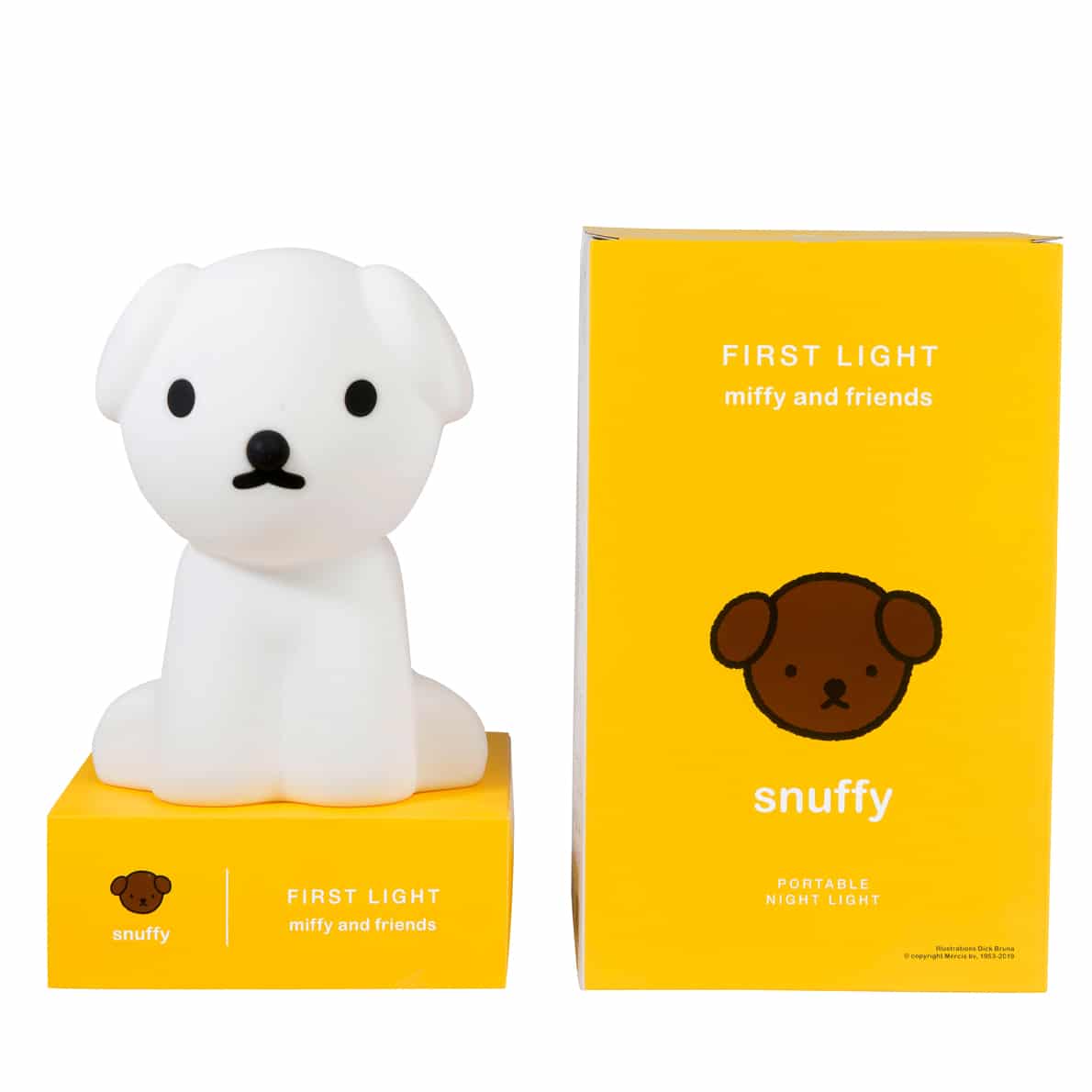 Miffys Freunde jetzt neu als First Light! Die süße Schnuffy „First Light“ Lampe ist 23 cm hoch, USB aufladbar und verfügt über ein dimmbares Mr Maria LED-Modul. Ob am Nachttisch oder unterwegs, Deine Schnuffy Lampe leistet Dir gerne Gesellschaft! Hergestellt aus weichem, BPA-freiem Silikon lässt sich die Lampe auch gerne mal knuddeln und ist auch als Reisebegleiter bestens geeignet.