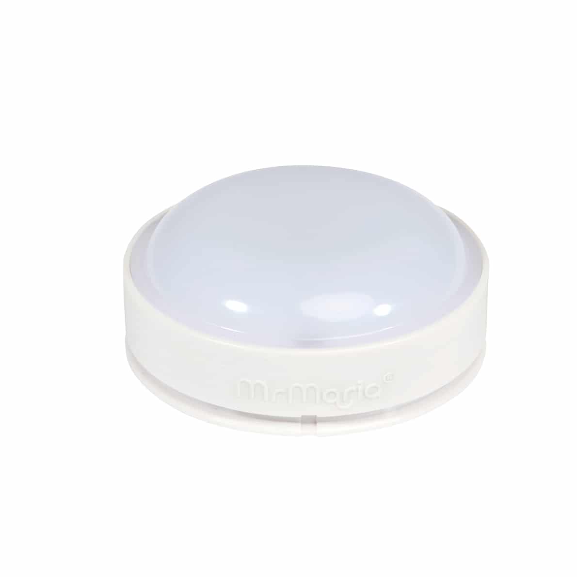Die Lampe hat eine Ein / Aus-Taste auf der Rückseite und eine Dimm-Taste auf der Unterseite. Nachtmodus inklusive.