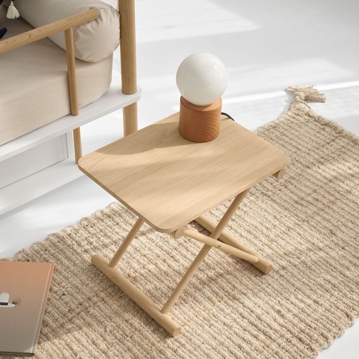 Der Camp Nachttisch besticht durch sein zeitloses X-Gestell aus Eichenholz und eine Tischplatte aus Eiche oder weiß lackiertem MDF. Sein elegantes Design und die sorgfältige Verarbeitung machen ihn zu einem ansprechenden Möbelstück für das Kinderzimmer Eures Lieblings. Er kann sowohl als eigenständiges Möbelstück als auch in Kombination mit anderen Möbeln der Camp Kollektion verwendet werden. Der Nachttisch ist in zwei Varianten erhältlich: hoch und niedrig, die beide in zwei Höhen individuell angepasst werden können. Die Tischplatte lässt sich ganz unkompliziert mit zwei Schrauben auf die gewünschte Höhe fixieren.