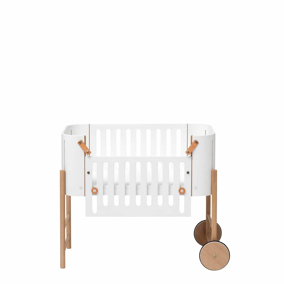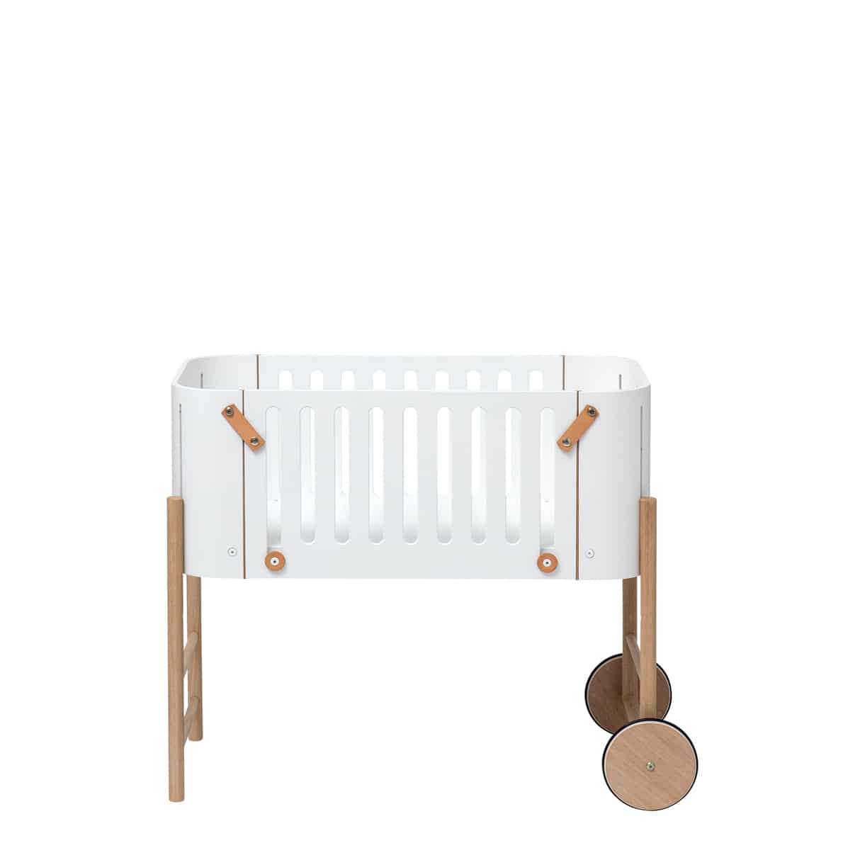 Das Wood Beistellbett zeichnet sich durch seine charakteristische skandinavische Formensprache aus und wird aus 100% massiver Birke und Eiche hergestellt. Das sicherheitsgeprüfte Design des Betts erfüllt eine ganze Reihe von Bedürfnissen: Die stufenlose Höhenverstellung sichert die perfekte Position im Verhältnis zum Bett der Eltern, in das das Baby jedoch nicht versehentlich hinein rollen kann. Die schön geformten Gitterseiten und der Lamellenboden des Bettes sichern optimale Luftzirkulation.