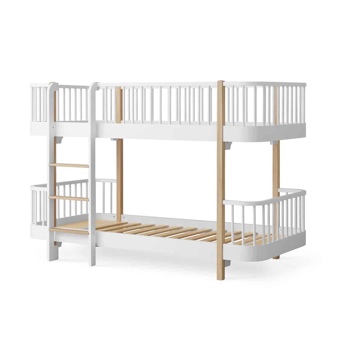 Das Wood Original halbhohe Etagenbett hat die volle Länge, nimmt aber in der Höhe weniger Platz ein als ein Standard-Etagenbett und ist daher eine gute Wahl für kleinere Kinderzimmer.