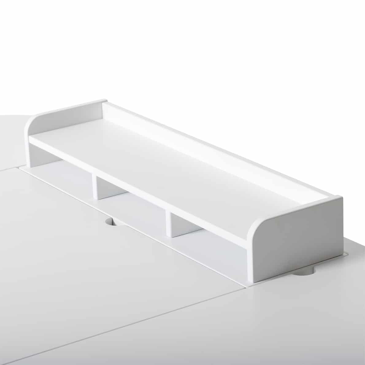 Mit seinen harmonischen Abmessungen und zahlreichen Funktionen eignet sich der Wood Schreibtisch ideal für ein Kinder- oder Jugendzimmer, macht aber auch in einer Nische im Wohnzimmer oder in der Küchenecke eine gute Figur. Der Tisch ist in zwei Höhen erhältlich und durch austauschbare Beine auch später jederzeit umbaubar. Er ist außerdem mit zwei Schubladen für A4-Blöcke und andere Schul- und Zeichenutensilien ausgestattet, sowie einer verdeckten Ablage, wo Laptops, Elektronik und Ladegeräte ihren festen Platz finden können. Durch das eingebaute Zeichenbrett, das wie eine Künstlerstaffelei vom Tisch hochgeklappt und verstellt werden kann, ist der Tisch sowohl zum Zeichnen als auch zum Lesen geeignet. Das wendbare Aufsatzregal mit drei Einteilungen und einer durchgehenden Ablagefläche, sorgt für Ordnung und Übersicht. Das Design des Tisches spricht kleine, kreative Köpfe an, die ihre großen architektonischen Ideen auf Papier und Bildschirm ausdenken und festhalten können. Der höhenverstellbare Wood Armlehnstuhl passt zum Wood Schreibtisch in beiden Höhen.