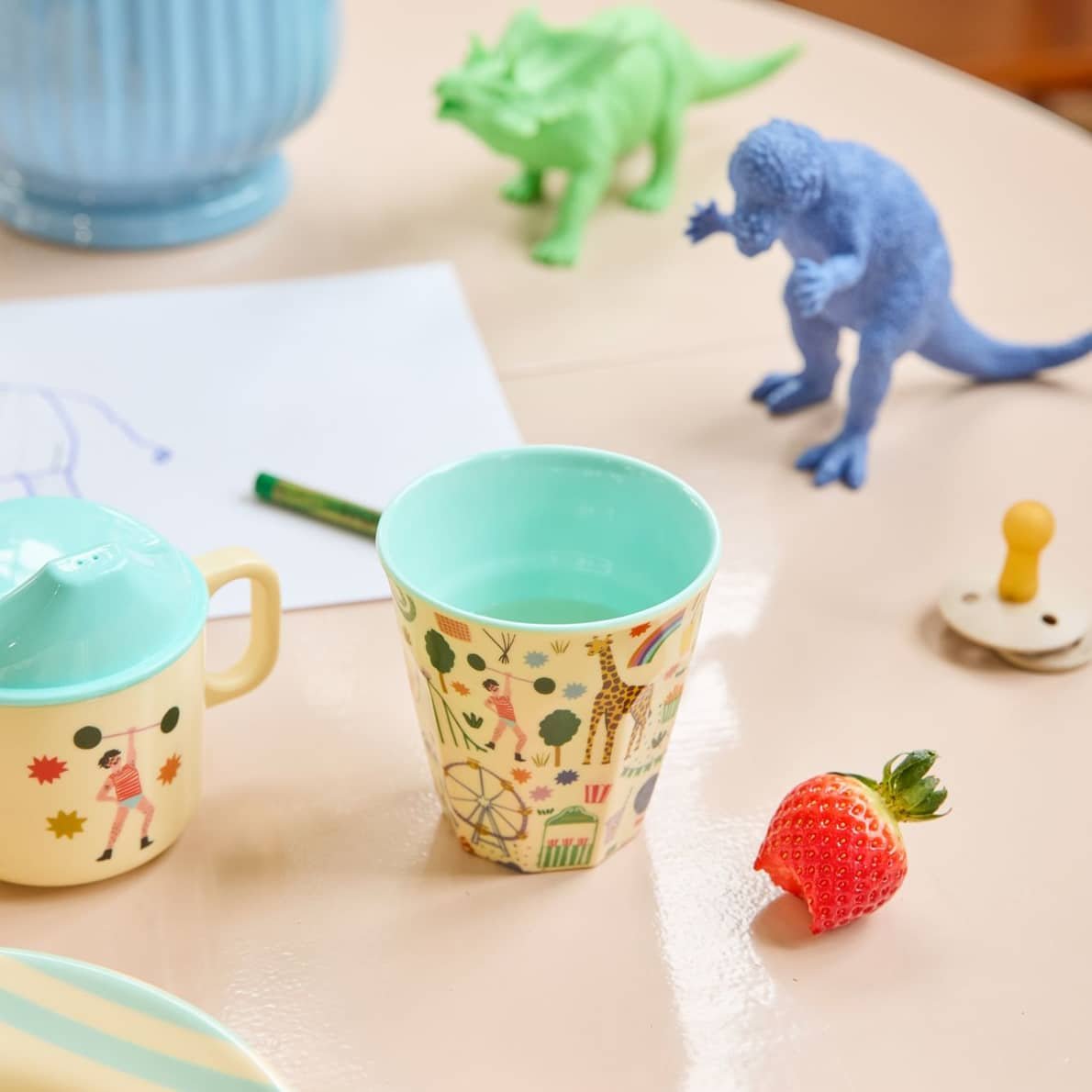 Mit dem mintfarbenen mittelgroßen Becher fühlt sich jeder Schluck wie ein süßes Abenteuer an – denkt an Zuckerwatte, Elefanten und Karussells! Er besteht aus dem praktischen Material Melamin. Melamin ist langlebig und aufgrund seiner Stärke und einfachen Reinigung ideal für den täglichen Gebrauch. Es nimmt weder Farbe noch Geschmack von Lebensmitteln an – perfekt für kleine neugierige Hände! Bitte beachtet, dass das Produkt nicht für die Mikrowelle geeignet ist.