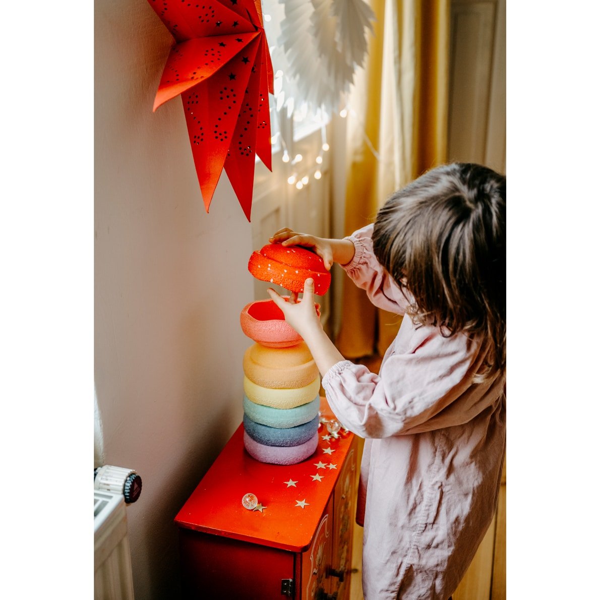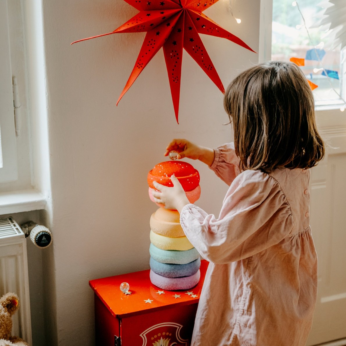 Das beliebte Mini Rainbow erhält ein exklusives Update und es gibt einen Original Mini in Blush & Rot gratis dazu. Mit 90 % Recyclinganteil im Blush-Farbton vereint diese Edition verspielte Farben mit Nachhaltigkeit. Ein winterliches Highlight für kleine Hände.