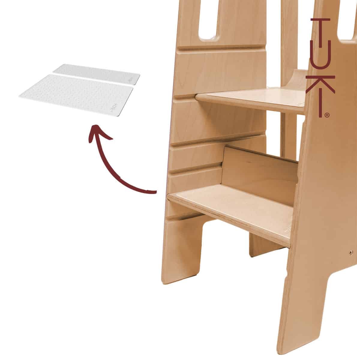 Ihr wollt Euren Tuki® noch sicherer für Euer Kind machen? Dann ist die zweiteilige rutschfeste Auflage, passend für Euren Tuki® Lernturm, genau das richtige. Sie bietet Eurem Kind einen besseren halt und schützt es vor dem wegrutschen, zudem ist sie kinderleicht anzuwenden und sieht dabei noch super stylisch aus.