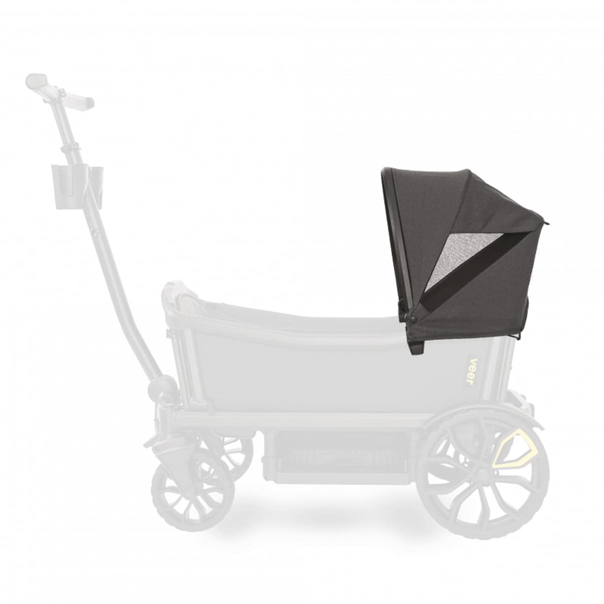 Das verstellbare Sonnendach für den Veer Cruiser lässt sich schnell und intuitiv am Rahmen des Cruisers befestigen und auf und zu klappen. Ihr könnt über jedem Sitz ein Sonnendach anbringen. Ein Peak-a-Boo-Fenster ermöglicht es Euch, Eure wertvolle Fracht zu beobachten. Versteckte Magnete halten das Fenster in der oberen Position.