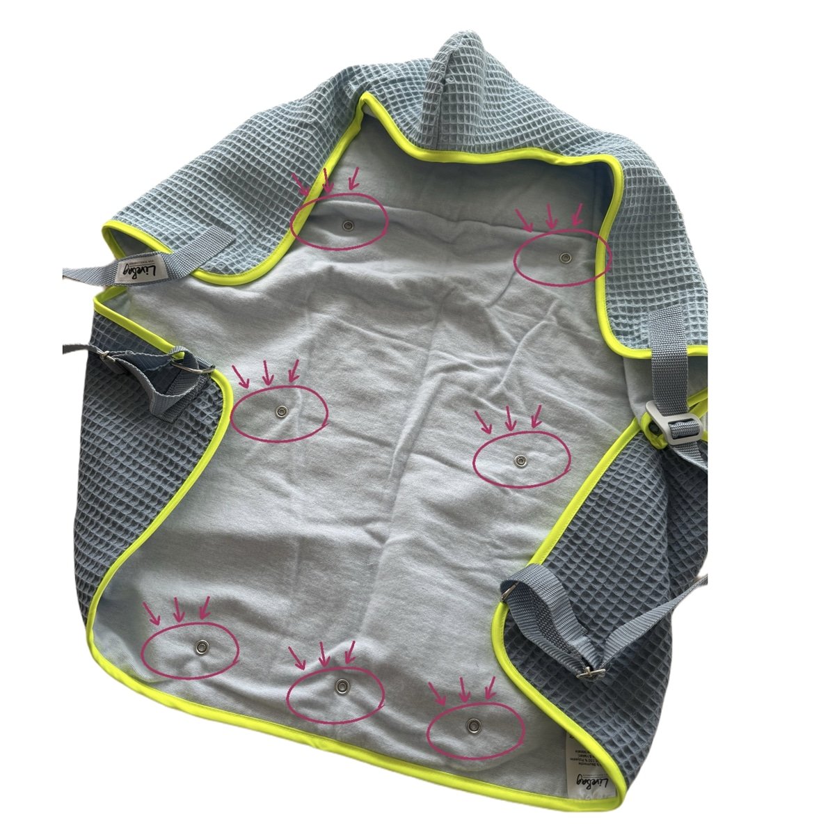 Ihr könnt das Inlay aus Schurwolle einfach je nach Wetter an die LiveBag inkl. Nieten dran knöpfen.