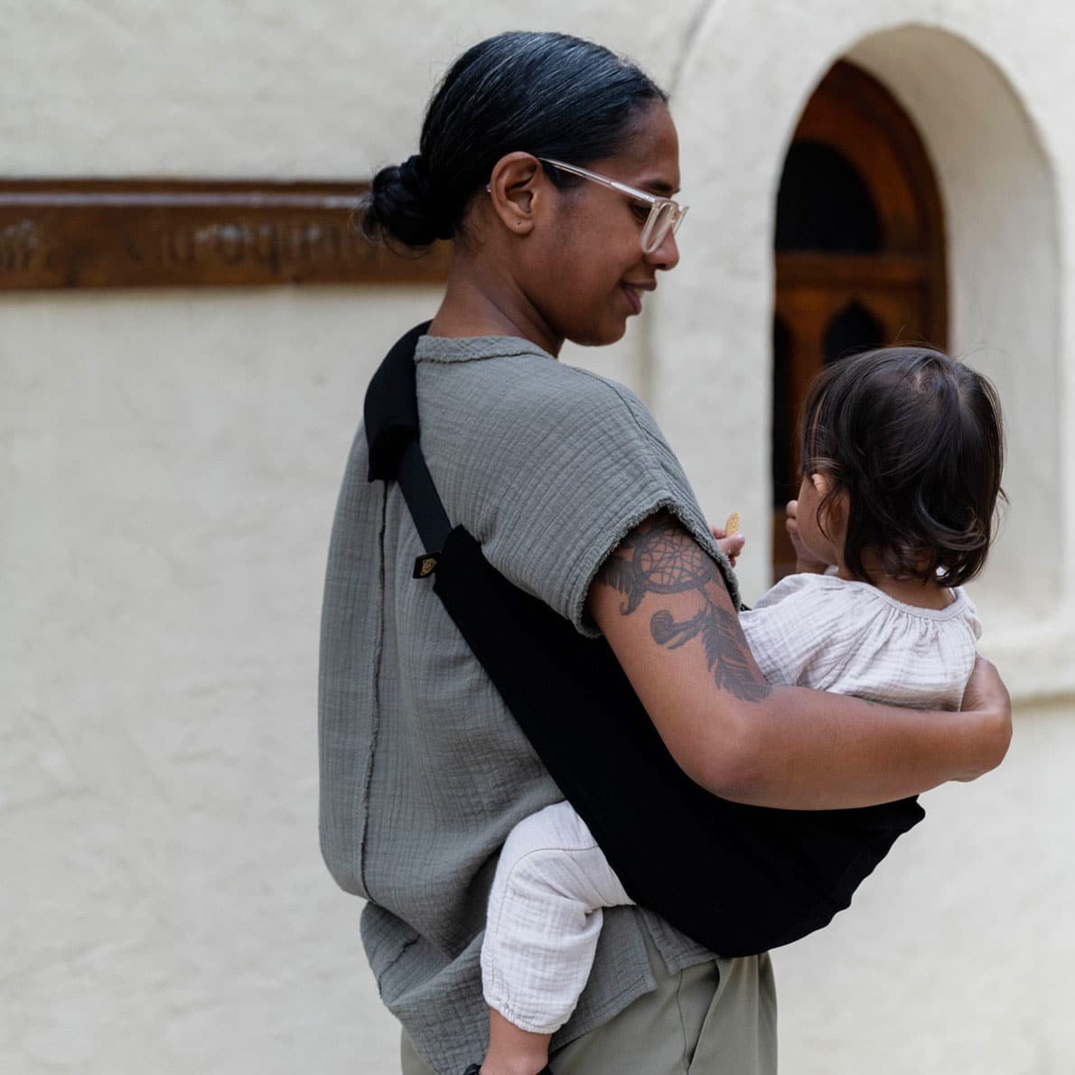 - Schwenkt die Trage sanft mit einem milden Flüssigwaschmittel in lauwarmem Wasser