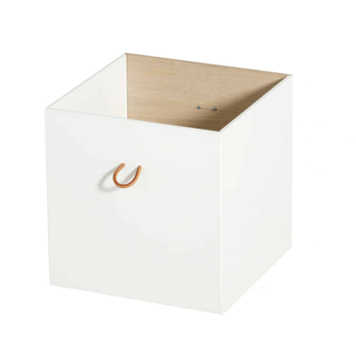 Zu den Wood Regalen 5×2 und 5×1 könnt Ihr diese schönen Aufbewahrungskästen erwerben. Sie haben 3 weiße und eine Eichenholzseite. Die Eichenholzseite sowie die gegenüberliegende weiße Seite haben je einen schönen Ledergriff. So kann man selber wählen welche Seite nach vorne gewendet wird.