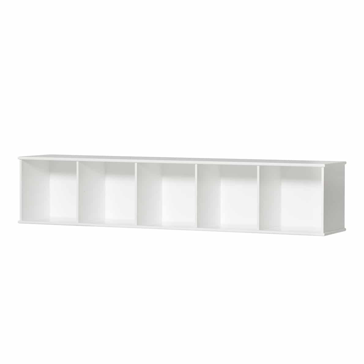Das Wood Regal 5×1 ist ein Kastenregal mit 5 Fächern. Das Regal ist funktionell so entworfen, dass man es entweder an der Wand anbringen kann, oder durch Zukauf eines Sockels auf den Boden stellen kann. Es eignet sich besonders für Kinderzimmer. Das Regal hat ein klassisch nordisches und stilechtes Design und damit eine Unzahl von Anwendungsmöglichkeiten. Das neutrale Design passt zu den meisten Einrichtungen. Im Kinderzimmer ist es ideal zum Aufbewahren von Büchern, kleinen Spielsachen oder den Lieblingsstofftieren. Als Extrazubehör gibt es Aufbewahrungskästen und zusätzliche Regalbretter, um die Fächer weiter zu unterteilen. Die Aufbewahrungskästen mit einer weißen Front und einer aus Eiche können frei gestellt und gedreht werden. Sie haben auf jeder Seite einen Ledergriff. Wird das Regal auf dem Sockel aufgestellt, kann man ein passendes Sitzkissen dazu erwerben und hat somit eine Sitzgelegenheit mit Stauraum für die Kleinen. Alle Oliver Furniture Kindermöbel und Möbel sind nachhaltig in Europa produziert.